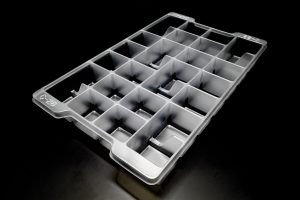 極小サイズのゴム成形加工品を1トレーに最大500個収納することができました。